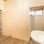 Die Traditional House At Koroni Near Beach verfügt über ein Sofa und einen Schreibtisch sowie ein Bügeleisen/Bügelbrett und eine Klimaanlage. Zur Ausstattung des Badezimmers gehören auch eine getrennte Toilette, eine Badewanne und eine Dusche. Es gibt einen Haartrockner und Badelaken für den Komfort der Gäste.